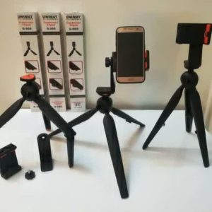 سه پایه نگهدارنده یونیمات مدل D-909 🔸قابلیت نگهداری موبایل ، مونوپاد و دوربین های عکاسی 🔸مناسب برای کلاس های مجازی ، ساخت کلیپ و پادکست 🔸کیفیت بالا و قیمت عالی 🔸میزان بازشدگی دهانه‌ گیره در حالت عادی باشد 54 میلی‌متر و اگر آن را تا انتها باز کنید تا 88 میلی‌متر خواهد بود 🔸ارتفاع این پایه‌ها در حالت بسته 26 سانتی‌متر و در حالت باز 35 سانتی‌متر است