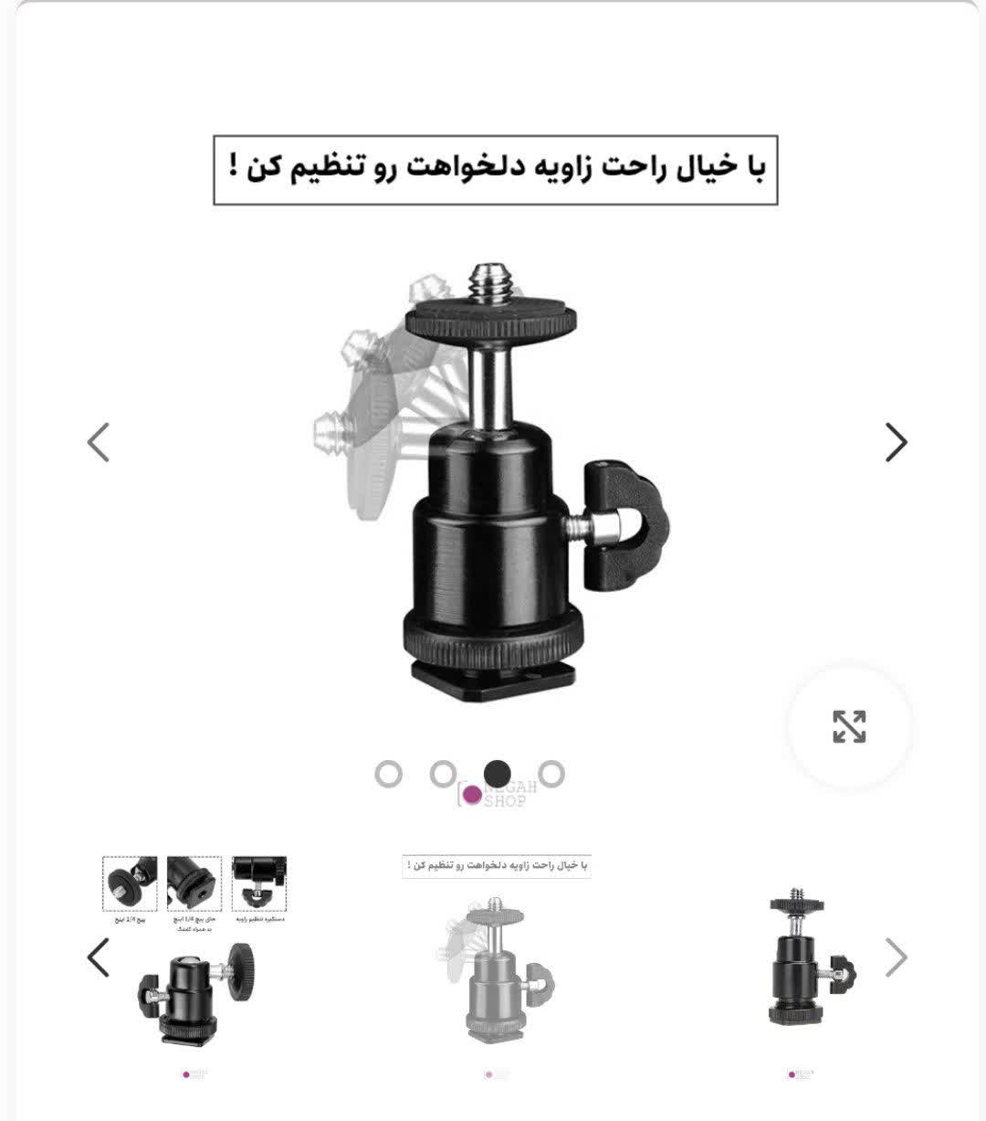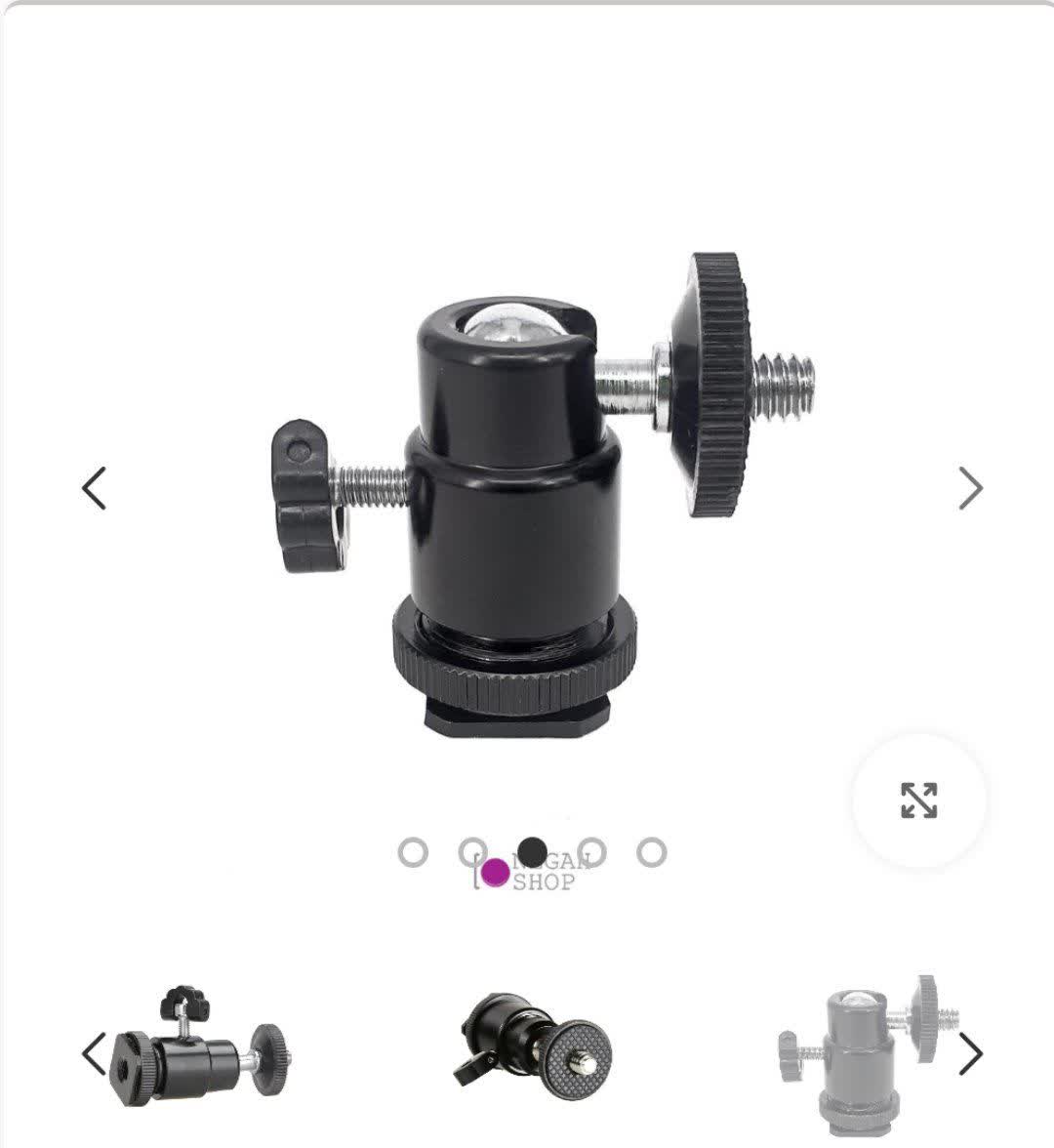 سر سه پایه مینی بال هد عکاسی ۳۶۰ درجه مناسب رینگ لایت بال هد و پایه نصب روی دوربین مخصوص نصب روی کفشک دوربین و سایر نگه دارنده ها پشتیبانی از پیچ 3/4 از جنس فلز مناسب برای نصب نور و میکروفن روی دوربین یا هولدر موبایل سایز بزرگ: 3*3*3